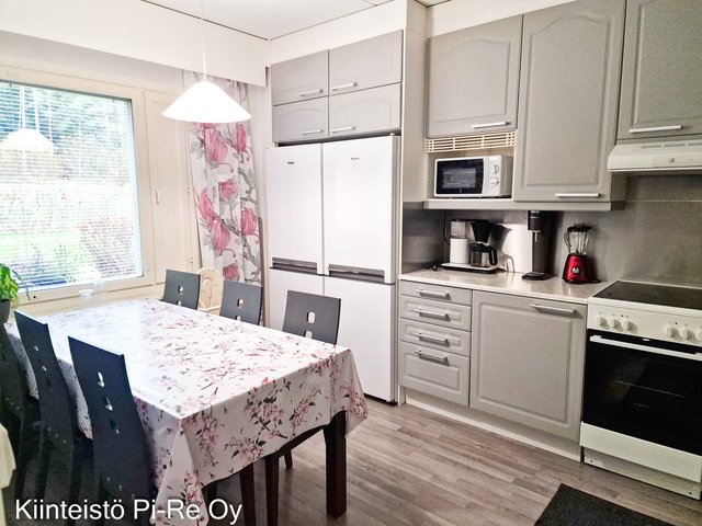 ASUNTOON TEHDYT REMONTIT: 2010 Asennettu ilmalämpöpumppu. 2019 Asennettu kauttaaltaan laminaatti. Markiisi terassille. Uusittu liesi ja jääkaappi/pakastin.