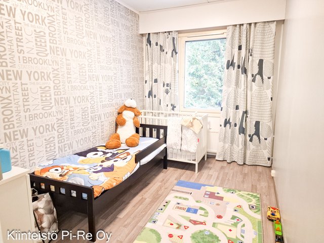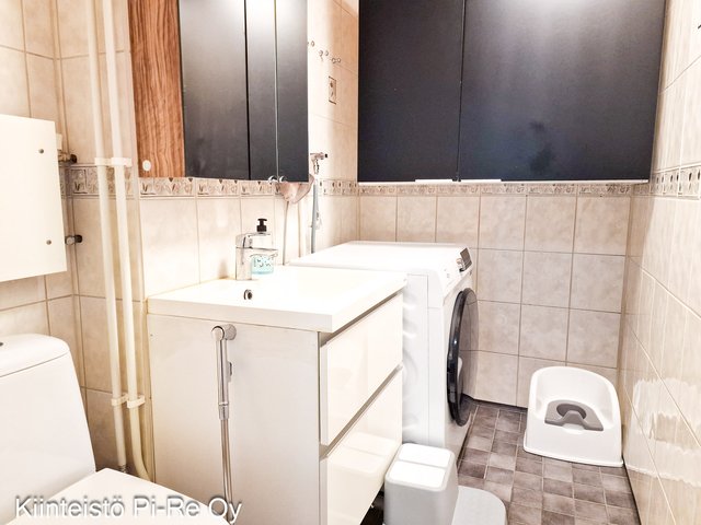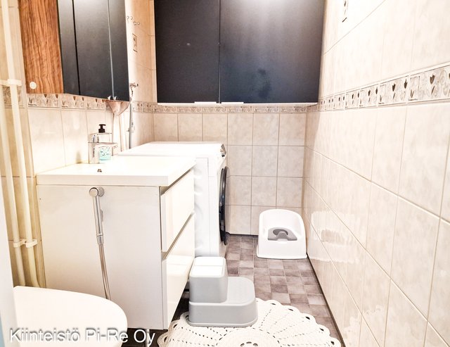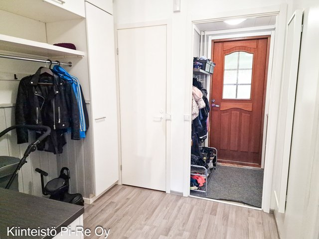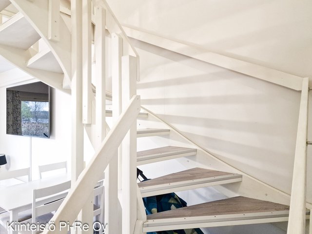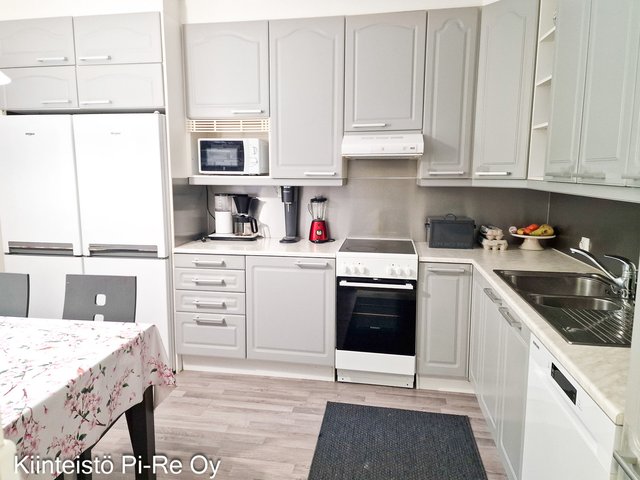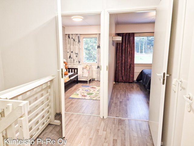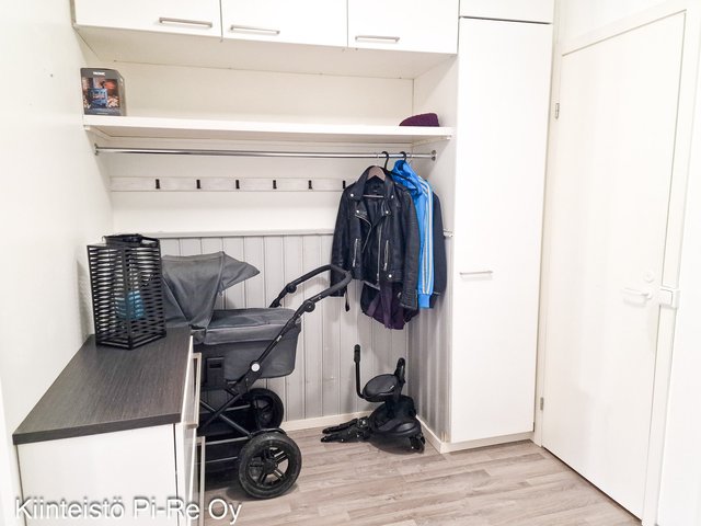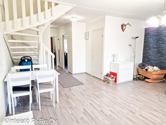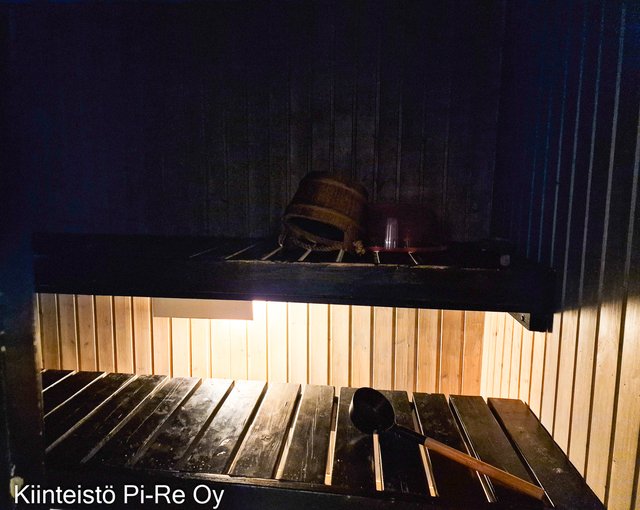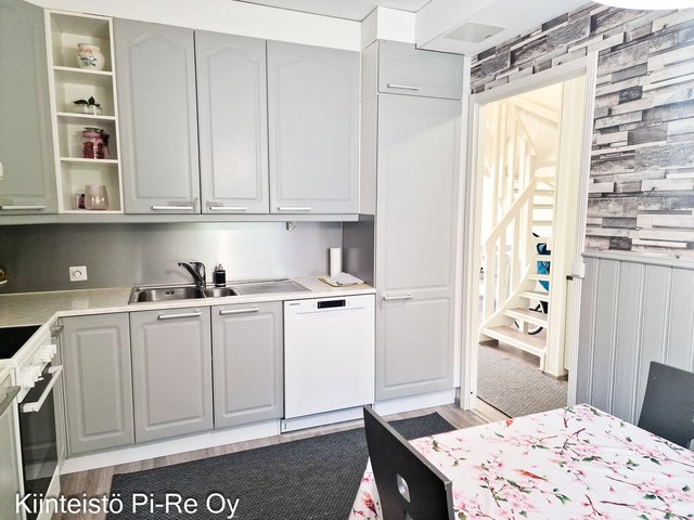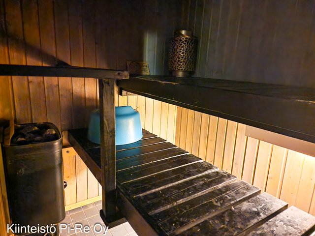 - KEITTIÖ: Keittiön lattiassa laminaatti, seinissä puolipaneeli ja tapetti/maali. Kodinkoneina jääkaappi/pakastin, liesi, liesituuletin ja astianpesukone. Harmaat kaapistot ja välitilassa harmaalevy. Jääkaappi/pakastin ja liesi sekä laminaatti uusittu 2019. OLOHUONE: Olohuoneen lattiassa on 2019 uusittu laminaatti, seinissä maali ja yhdellä seinällä tehostetapetti. Kulku terassille. MAKUUHUONEET: Makuuhuoneissa myös laminaatti lattiassa, asennettu 2019. Seinät tapetoidut/maalattu. Yhdessä huoneessa kaapisto ja yhdessä iso vaatehuone, jota käytetty myös makuuhuoneena. SAUNAOSASTO: Saunassa laattalattia, seinät ja katto paneloidut, sähkölämmitteinen kiuas. PESU / WC-TILAT: Pesutiloissa laattalattia, seinissä kaakelia ja paneelikatto. Suihku, suihkuseinä, käsienpesualas, peilikaappi ja wc. Alakerrassa erillinen wc, joka myös laatoitettu. Täällä varustuksena wc, käsienpesuallas kaappeineen ja pesukoneliitäntä. TERASSI: Olohuoneesta kulku etelän suuntaiselle piha-alueelle, jossa terassi. Sateelta ja kuumalta auringonpaahteelta suojaa tuo markiisi. Piha-alueelta pääsee helposti lasten leikkipaikalle. SÄILYTYSTILAT: Makuuhuoneessa ja eteisessä on kaappeja sekä kaksi vaatehuonetta. Lisäksi asuntokohtaiset varastot.