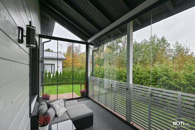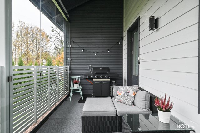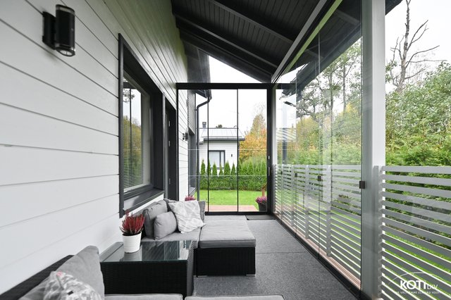 - Todella tilava lasitettu terassi johon kulku sekä kodinhoitohuoneesta että olohuoneesta.