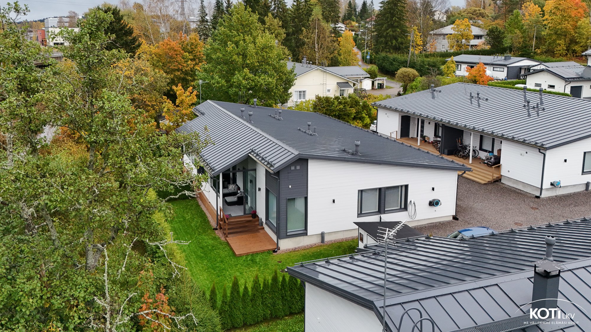 3 mh, avokeittiö, olohuone, khh, kph, s, erill.wc, vh, varasto, lasitettu terassi, pihavarasto
