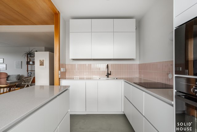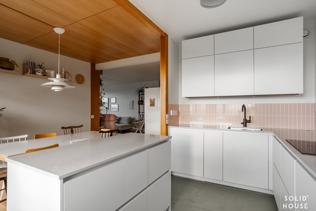 - Eteistiloissa ja käytävällä alkuperäinen klinkkeri. Keittiössä mikrosementti. 2 pienemmässä makuuhuoneessa laminaatti. Päämakuuhuoneessa, olohuoneessa, ruokailutilassa parketti (hiottu 2023).