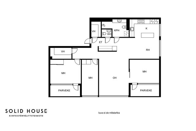 4 h, avokeittiö, rt, kph, wc, 2 x vh ja 2 parveketta