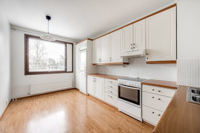 Aallonhuipussa, Espoon Kivenlahdessa, odottaa valoisa läpitalon kolmio uutta omistajaansa, huoneisto sijaitsee ylimmässä kerroksessa, tarjoten rauhallisen asuinympäristön ja hyvät näkymät.