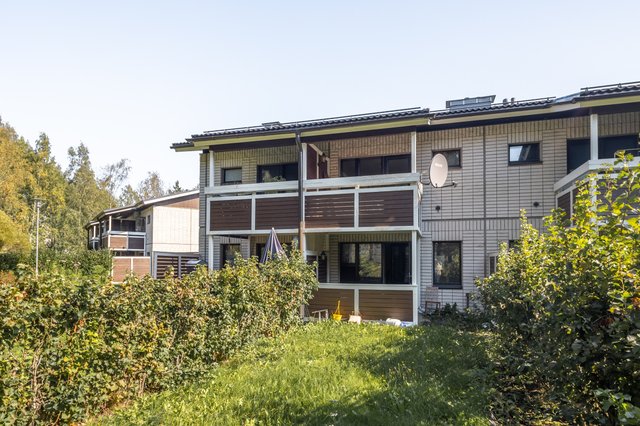 Hyvä perheasunto vehreällä, rauhallisella alueella. Omalla pihalla voi järjestää vaikka grillijuhlat ja yläkerran parvekkeella on mukava vilvoitella saunan jälkeen. Alakerrassa reilunkokoinen olohuone, josta käynti omalle pihalle, hyvin varusteltu keittiö ja erillinen wc. Tilavat makuuhuoneet ja sauna ovat yläkerrassa.