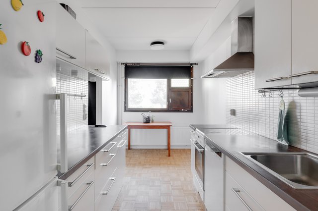- Jääkaappipakastin, liesi, astianpesukone, ja liesituuletin