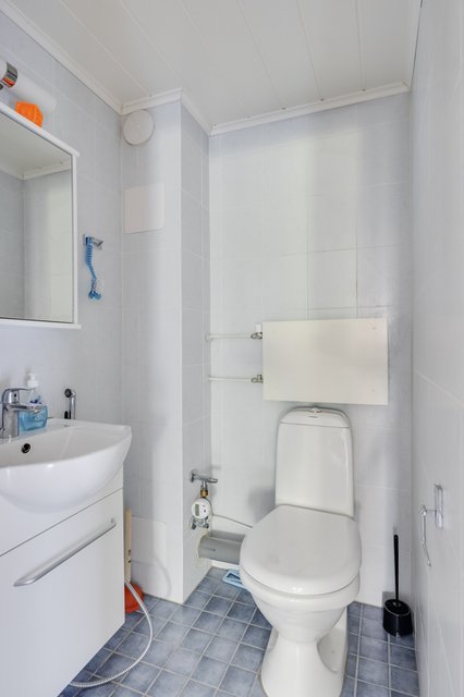 - WC-istuin, suihku, pesukoneliitäntä, peilikaappi, bidee-suihku, ja pesuallas
