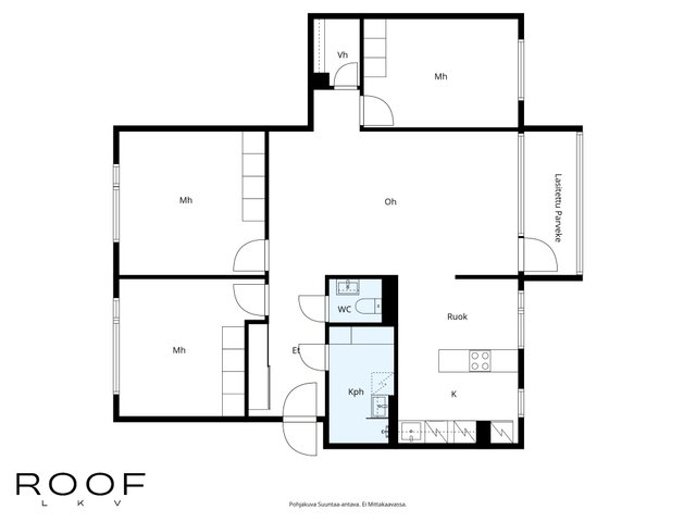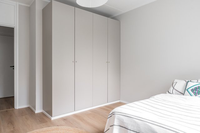 Asunnon pohjaratkaisu on käytännöllinen ja selkeä. Olohuoneesta on käynti lasitetulle parvekkeelle, joka toimii viihtyisänä lisähuoneena keväästä syksyyn. Makuuhuoneita on kolme, ja ne tarjoavat hyvin vaihtoehtoja niin perheen tarpeisiin kuin työ- tai vierashuoneeksi. Runsaiden kaappien ja säilytystilojen ansiosta arki pysyy helposti järjestyksessä.