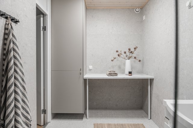 - Tyylikkäästi 2025 remontoitu tilava kylpyhuone.