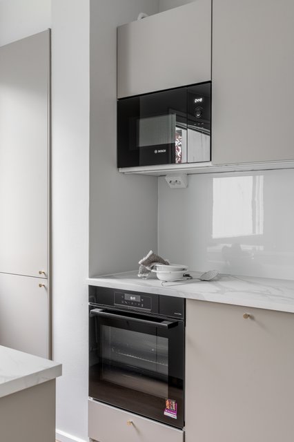 - Jenkkikaappi, liesi, erillisuuni, keittiösaareke, kaapistot, mikroaaltouuni, ja astianpesukone