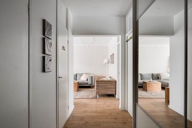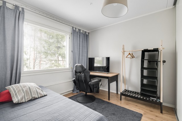 - Makuuhuoneiden lattia on laminaattia, seinät on maalattu. Molemmissa huoneissa on tilavat liukuovikaapistot.