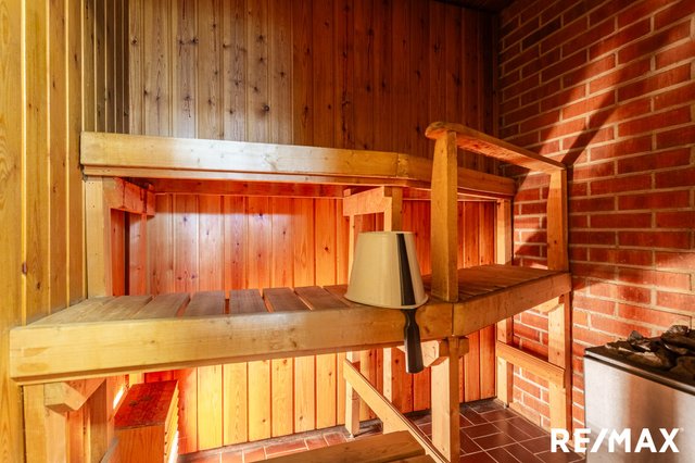 Sisääntulokerroksessa on olohuone, keittiö, kaksi makuuhuonetta, pesuhuone/sauna ja erillinen wc-tila. Keittiö on tilava ja siellä on sähkölieden lisäksi kunnon vanhanajan puuhella, sekä varaava takkamuuri. Olohuoneessa oleva ilmalämpöpumppu auttaa mukavasti tasaamaan lämmityskustannuksia. Pesuhuoneen lattia on laattaa ja tila varustettu suihkukaapilla ja pesukoneliitännällä. Saunan kiuas on tietenkin puulämmitteinen ja löylyistä pääsee vilvottelemaan pesuhuoneen kautta suoraan lasitetulle parvekkeelle.