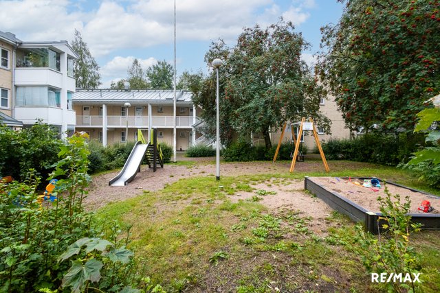 Ensimmäisessä kerroksessa omalla sisäänkäynnillä vuonna 1987 rakennetusta taloyhtiöstä. Asunnon kylpyhuone on tilava ja olohuoneesta on käynti pienelle terassille, joka tarjoaa mukavan paikan nauttia ulkoilmasta. Vaatehuone antaa hyvin säilytystilaa.