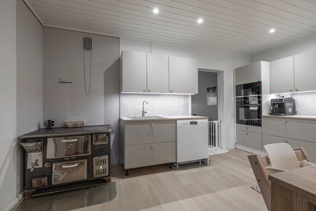 - Remontoitu 2025. Charmia keittiö ja vinyylilattia sekä puuhella.