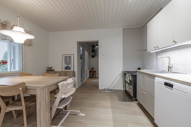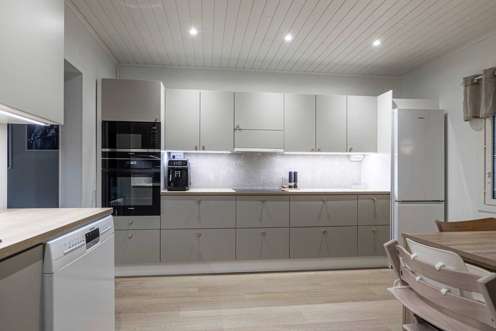 Talo on kokenut merkittäviä remontteja viime vuosina, mukaan lukien Charmia keittiön uusinta vuonna 2025. Keittiö on varustettu nykyaikaisilla kodinkoneilla ja tarjoaa erinomaiset puitteet ruoanlaittoon ja perheen yhteisille hetkille. Pesuhuone, sauna ja kodinhoitohuone on uusittu vuosina 2014–2016, mikä lisää huolettomuutta asumiseen eikä uusia remontteja ole heti näköpiirissä.