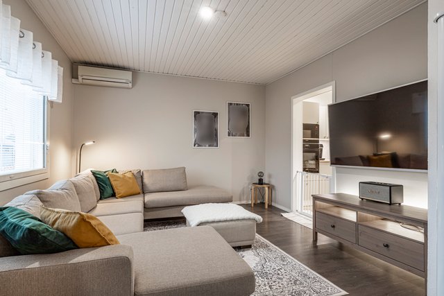 Asunnossa on kolme makuuhuonetta, jotka tarjoavat tilaa perheen jokaiselle jäsenelle. Olohuoneen lämpöä ja tunnelmaa lisää varaava takka, ja talossa on kaukolämmitys sekä kahdessa kerroksessa ilmanlämpöpumput lämmittämään kylmällä ja viilentämään kuumina kesäpäivinä. Upean keittiön lisätunnelmaa luo vanha puuhella. Kellarikerroksessa sekä eteisessä on vesikiertoinen lattialämmitys ja muualla talossa on vesikiertoiset patterit. Luonnonvaloa tulvii sisään suurista ikkunoista, mikä tekee kodista valoisan ja viihtyisän.