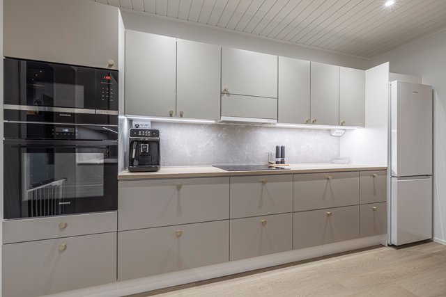 - Erillisuuni, liesi, liesituuletin, mikroaaltouuni, astianpesukone, ja puuhella