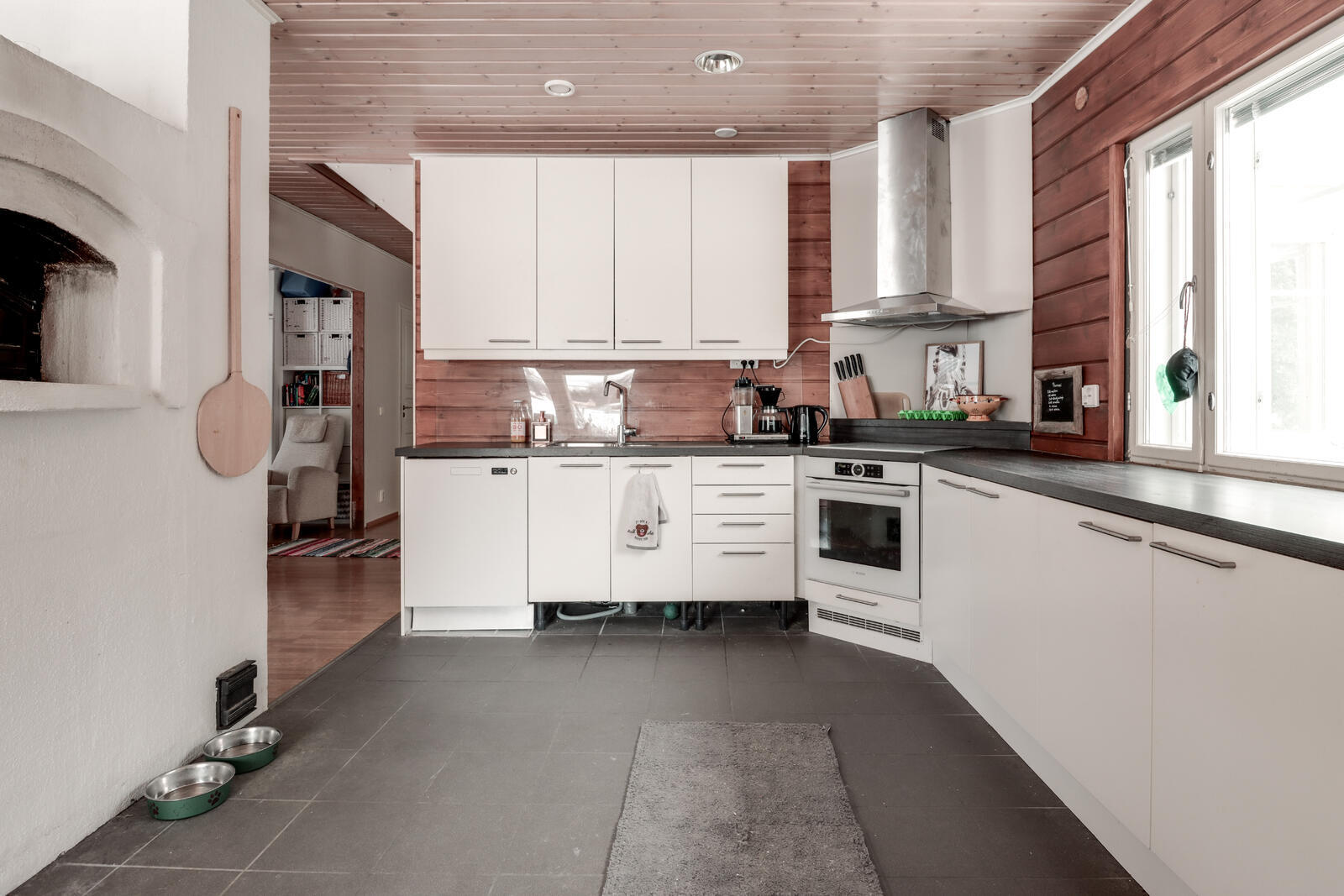 Tämä koti on suunniteltu valoisaksi ja viihtyisäksi, sillä laajat ikkunat tuovat sisätiloihin luonnonvaloa ja tarjoavat rauhallisia näkymiä ympäröivään maalaismaisemaan. Tunnelmaa ja lämpöä kotiin tuovat takkasydän ja leivinuuni, jotka ovat täydellisiä niin viileinä talvi-iltoina kuin kesäpäivienkin tunnelmointiin. Lisäksi maalämpöratkaisu varmistaa tehokkaan ja ympäristöystävällisen lämmityksen ympäri vuoden.