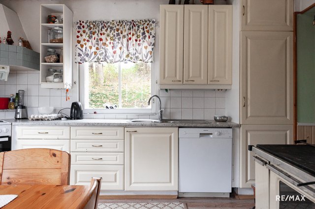 - Jääkaappipakastin, liesi, liesituuletin, astianpesukone, ja puuliesi
