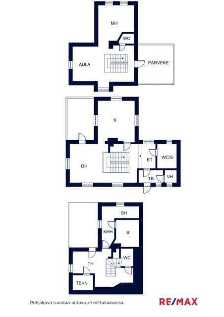 - Sauna ja pesutilat alakerrassa, suihku/wc keskikerroksessa