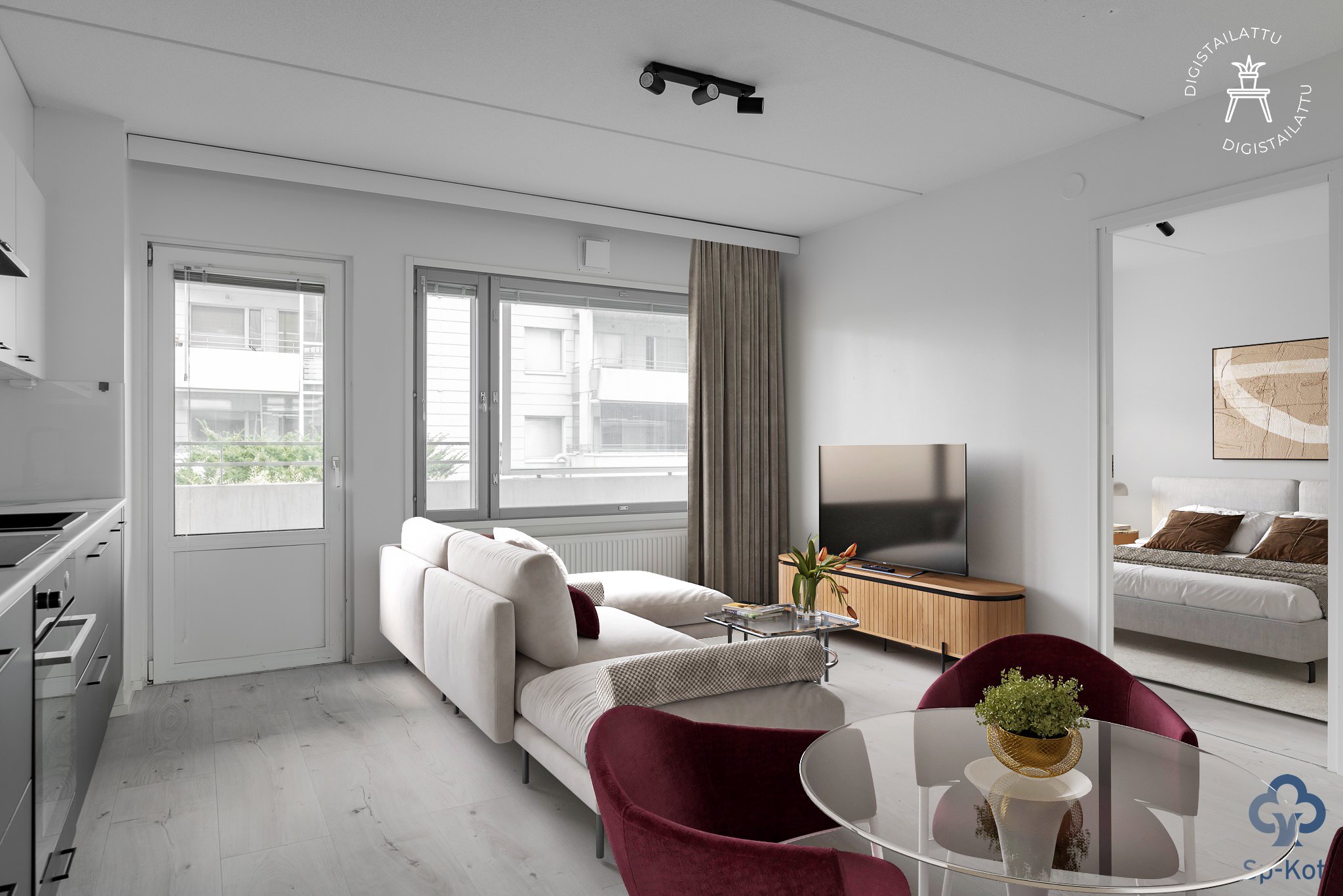 Asunto on hiljattain remontoitu ja siistit pinnat luovatkin raikkaan sekä valoisan yleisilmeen. Myös tyylikäs keittiö on uusittu ja varustettu moderneilla laitteilla, kuten induktioliesitasolla ja integroiduilla jääkaappi/pakastimella sekä astianpesukoneella, mikä tekee arjesta sujuvaa. Säilytystilaa löytyy mukavasti, sillä oman häkkivaraston lisäksi makuuhuoneessa ja eteisessä on tilavat liukuovikaapistot.