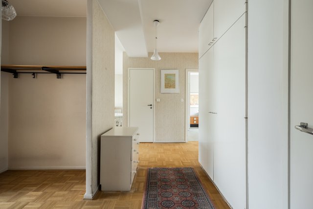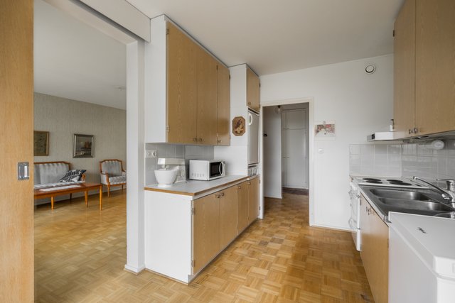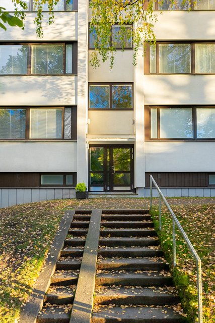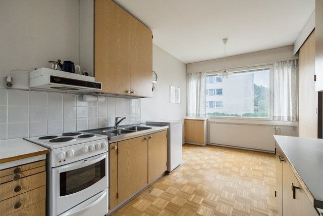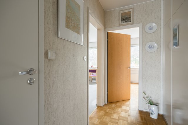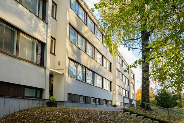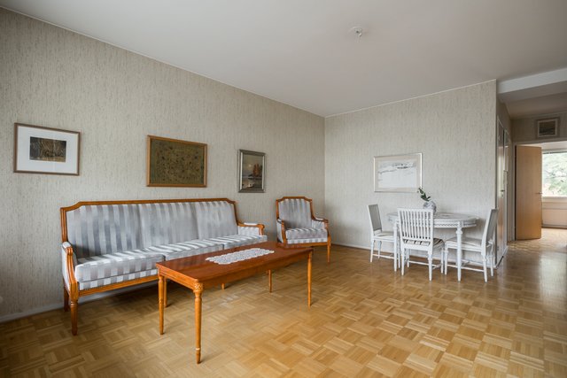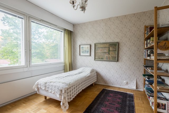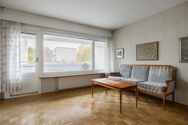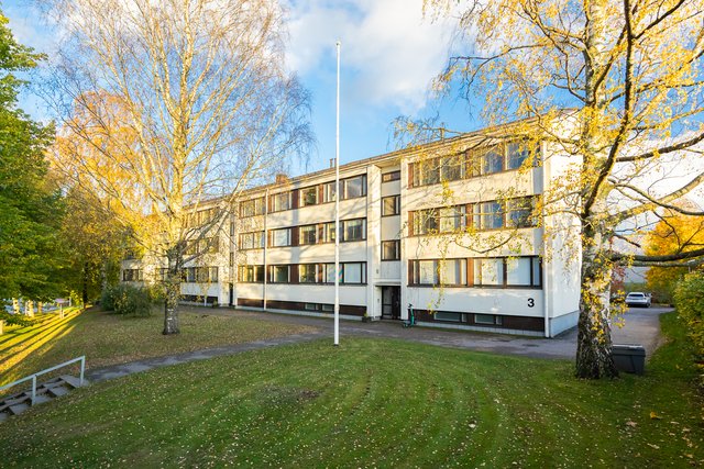 Läpitalon suuret ikkunat, joista luonnonvalo tulvii upeasti asuntoon sisään. 1960-luvun henki näyttäytyy muutoinkin tilaratkaisussa. 75,5m2 ja kaksi wc:tä, sekä kolme huonetta tuo hyvät puitteet pienelle perheelle tai pariskunnalle.