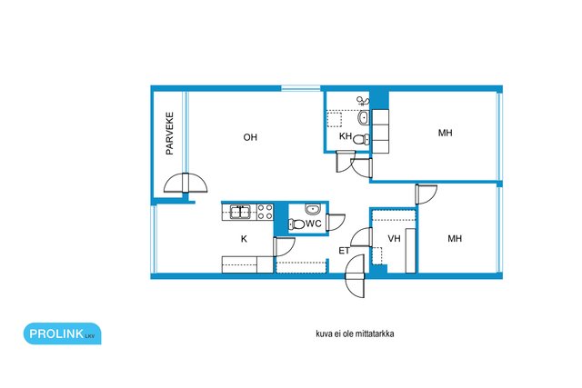 - Isännöitsijäntodistuksen mukainen, (Pinta-ala ei ole tarkistusmitattu ja todellinen pinta-ala voi olla suurempi tai pienempi, kuin ilmoitettu)