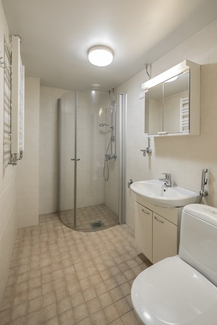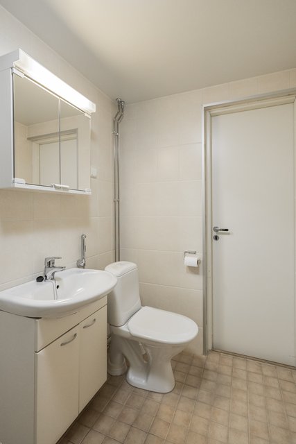 Tilava kylpyhuone, sekä erillinen wc on remontoitu taloyhtiön käyttövesiputki/viemäriremontin yhteydessä vuonna 2009, muutoin vanhemmat pintaratkaisut joihin pääset itse vaikuttamaan.
