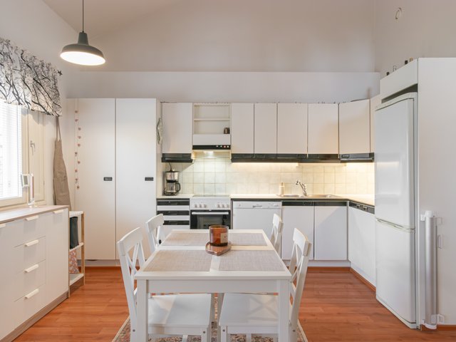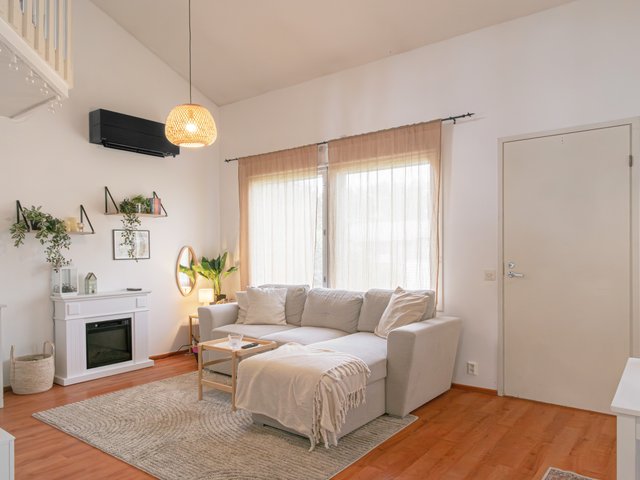 Avara keittiö/olohuone toimii kodin sydämenä. Alakerran makuuhuoneen lisäksi olohuoneessa tilava parvi, jonka neliöt hyvä ottaa hyötykäyttöön. Makuuhuoneessa säilytykseen vaatehuone. Sähkölämmityksen tukena ilmalämpöpumppu (2022). Valokuitu asennettu 2025. Kiviojan koulu lähettyvilläsi. Pienen (6 huoneistoa) taloyhtiön talous kunnossa. Autokatoksen yhteydessä varastotila.