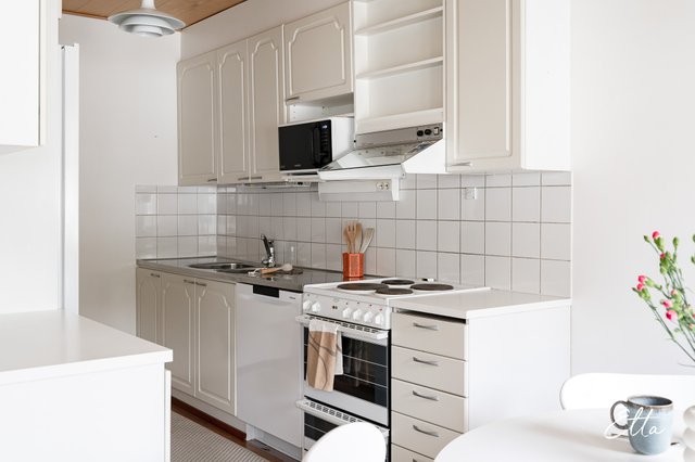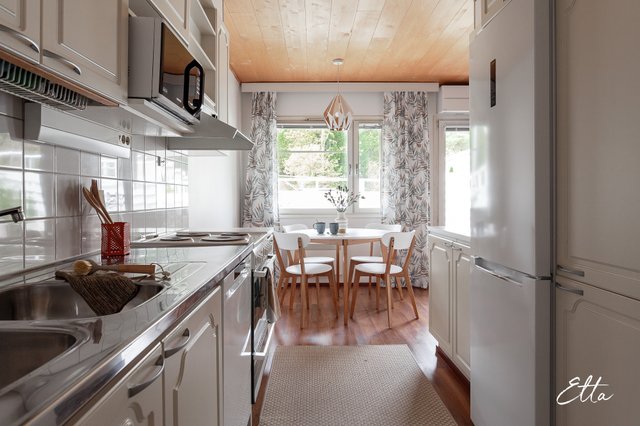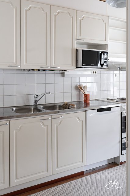 - Jääkaappipakastin, liesituuletin, liesi, ja astianpesukone
