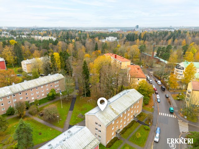 Pohjois-Haaga on vehreä, rauhallinen asuinalue, jossa yhdistyvät hyvät liikenneyhteydet, koulut- ja päiväkodit ja monipuoliset palvelut. Lähimpään kauppaan sekä bussipysäkille on vain kivenheiton verran matkaa, sekä muun muassa Kauppakeskus Kaari on runsain palveluin noin 1,8 km päässä. Raide-Jokerin Ilkantien asemalle on matkaa vain muutama sata metriä. Raide-Jokeri toimii välillä Keilaniemi-Itäkeskus. Alueen puistot ja ulkoilumahdollisuudet tekevät siitä täydellisen paikan nauttia arjesta ja luonnosta. Tämä asunto tarjoaa erinomaisen mahdollisuuden asua rauhallisella ja vehreällä alueella, kuitenkin hyvien palveluiden ja liikenneyhteyksien äärellä.