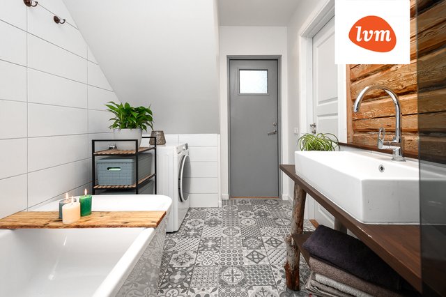 - Kylpyamme, pesukone, lattialämmitys, peili, pesuallas, ja allaskaappi