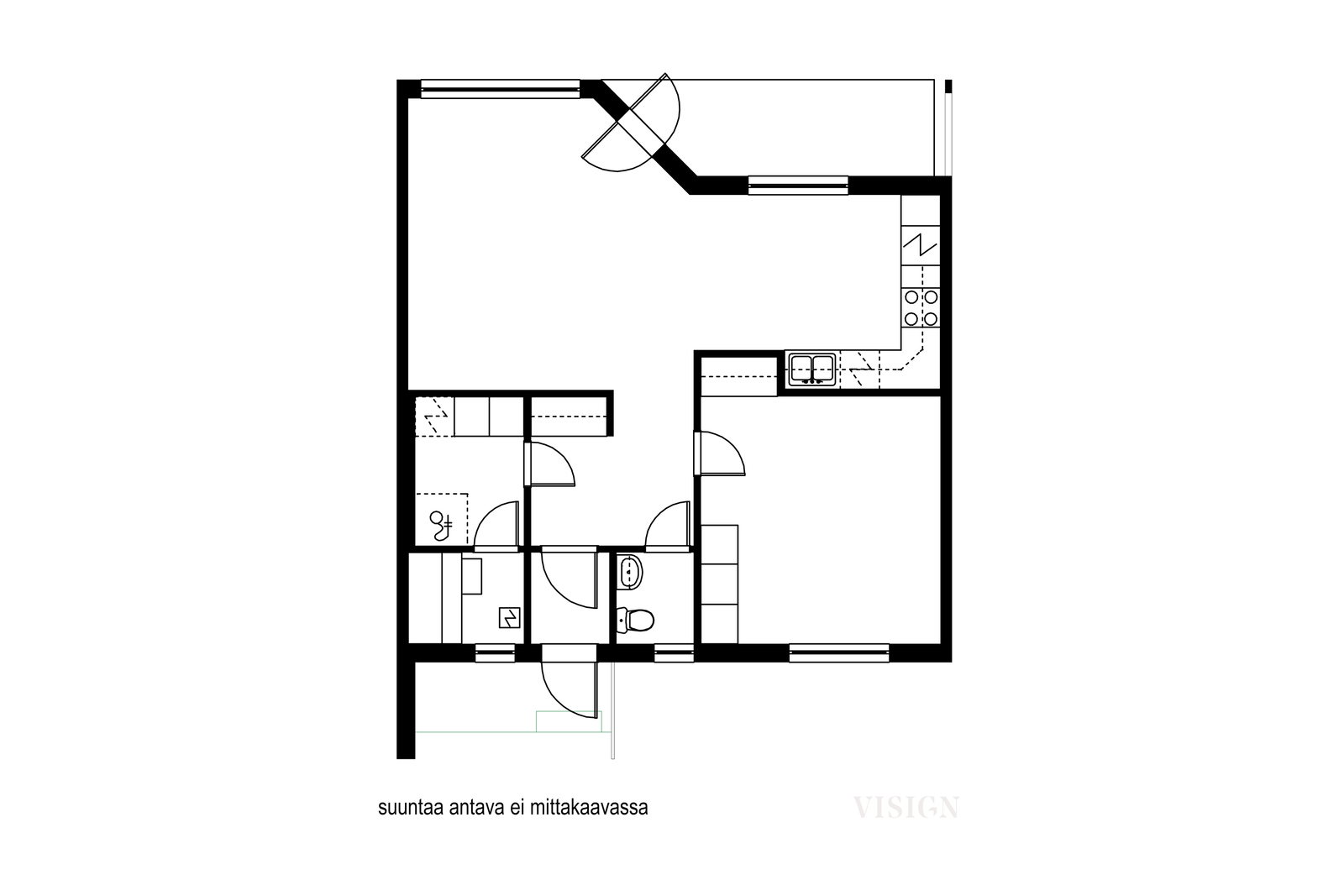 - Pinta-alaa ei ole tarkistusmitattu. Edellä mainittu pinta-ala saattaa tämän ikäisessä kohteessa poiketa olennaisestikin huoneiston nykyisten mittaustapojen ja standardien mukaan laskettavasta pinta-alasta. Huoneiston todellinen asuinpinta-ala voi siis olla yhtiöjärjestyksessä, isännöitsijäntodistuksessa ja esitteessä mainittua pienempi tai suurempi.