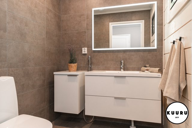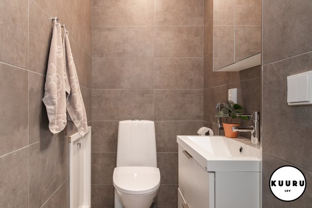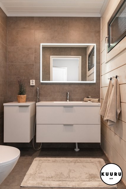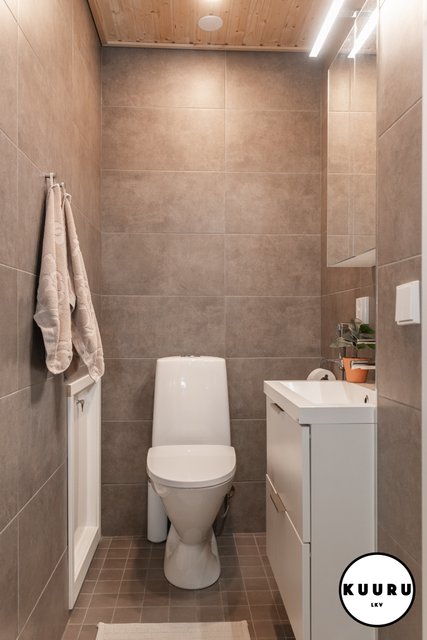 - Kohteesta löytyy kaksi wc:tä: yksi pesuhuoneessa ja toinen eteisessä. Molemmat tilat ovat tyylikkäitä, ja niissä on runsaasti kaappitilaa, mikä helpottaa puhtaan ja siistin yleisilmeen ylläpitoa.