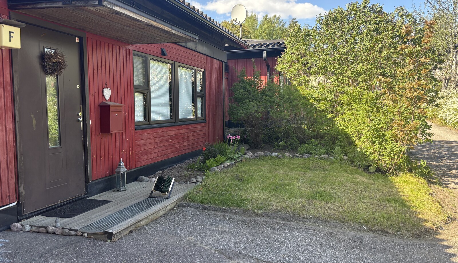 - Asunnon käytössä suojainen katettu terassi ja iso piha-alue.