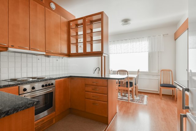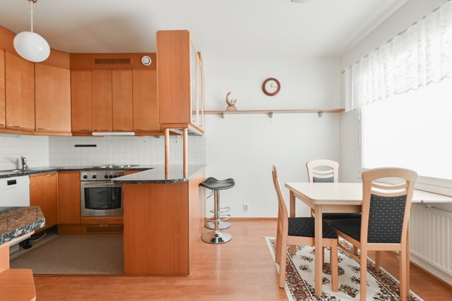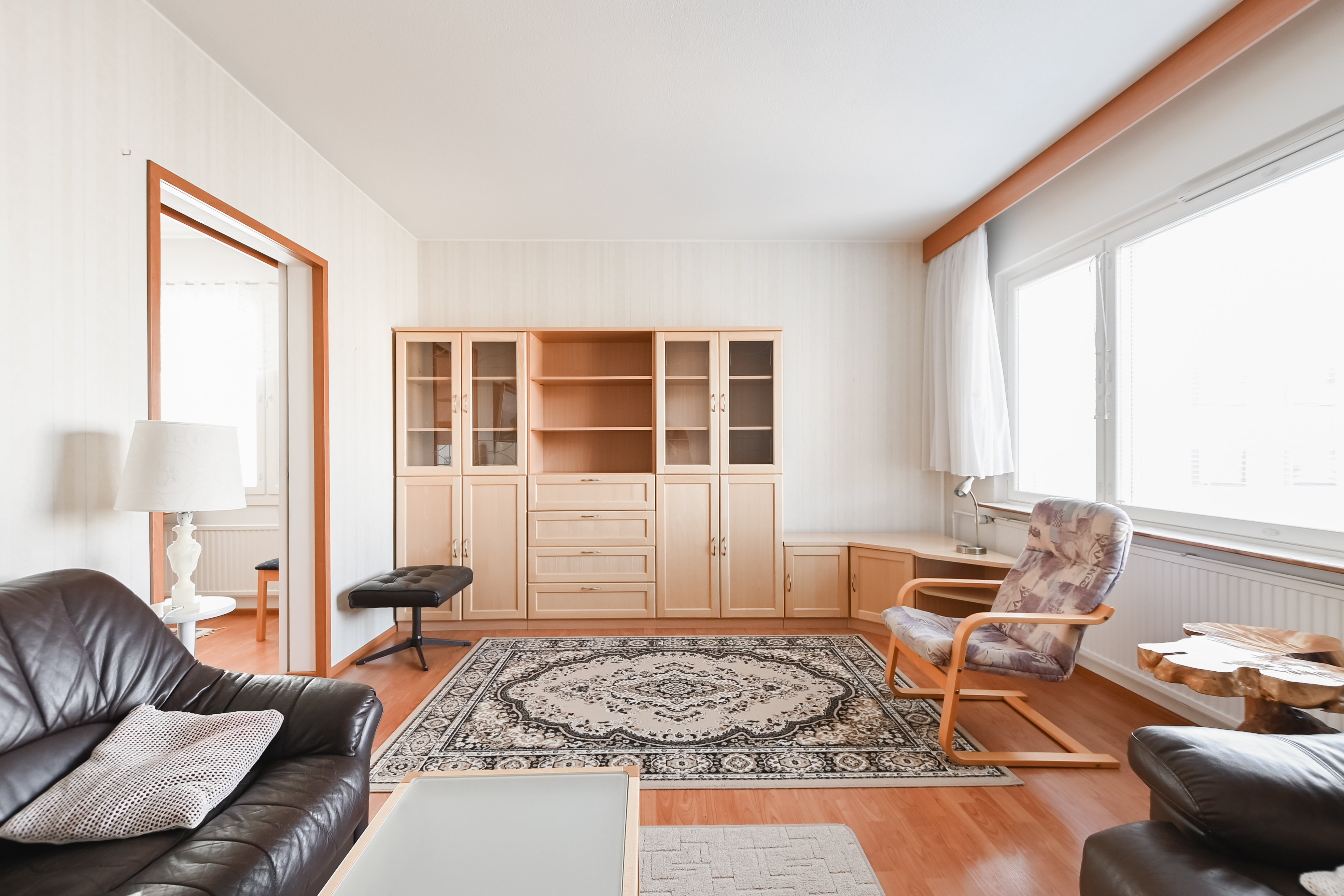 Asunto on hyvässä peruskunnossa. Lattiat ovat siistillä laminaatilla ja seinät tapetilla. Kodin keittiö ja olohuone on yhdistetty toimivaksi ratkaisuksi ja tuo avaruutta asuntoon. Asunnossa on tilava makuuhuone, jossa kaapisto vaatteiden säilytystä varten. Kylpyhuone on neutraalin vaalea ja hyvässä kunnossa. Lasitettu parveke tuo lisätilaa ja mahdollisuuden nauttia ulkoilmasta ympäri vuoden.