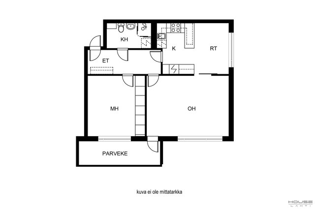 - Ei tarkistusmitattu. Pinta-alat saattavat tämän ikäisissä kohteissa (yhtiö rekisteröity ennen 01.01.1992) poiketa olennaisestikin asuinrakennusten nykyisten mittaustapojen ja standardien (SFS 5139) mukaan laskettavasta asuintilojen pinta-alasta. Pinta-ala voi siis olla edellä mainittua pienempi tai suurempi.