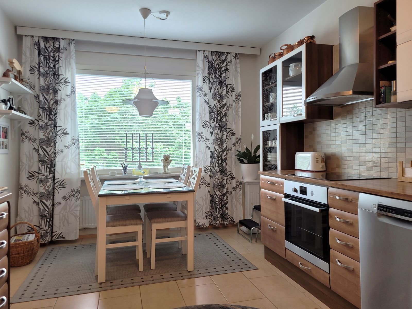 - kaunis, toimiva keittiö remontoitu n.2010. Kaappeja lisätty ja koneita uusittu 2023