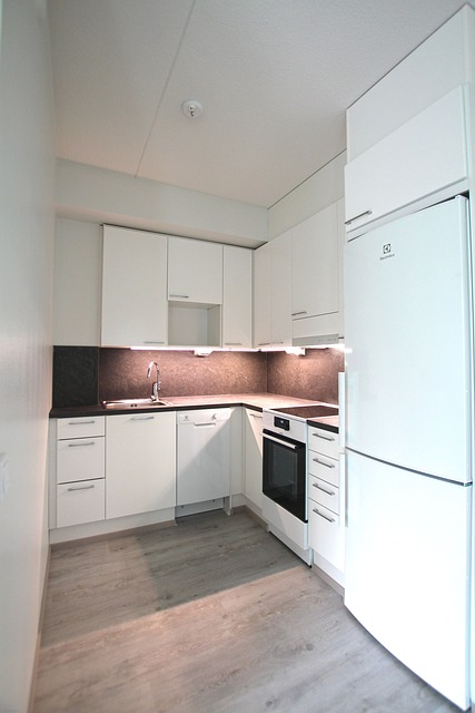 - Lattialiesi keraamisella tasolla, jääpakastinkaappi, liesituuletin, astianpesukone.