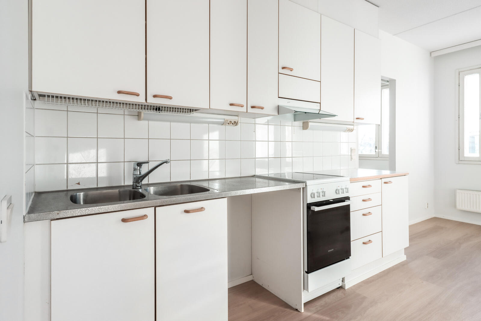 - Jääkaappipakastin, liesituuletin, ja varattu paikka astianpesukoneelle, kiinteät valaisimet