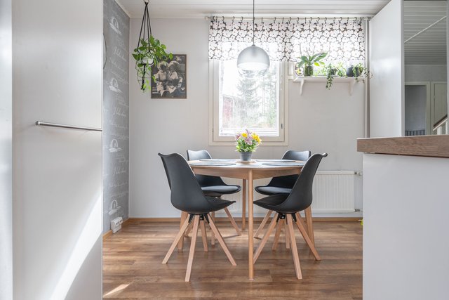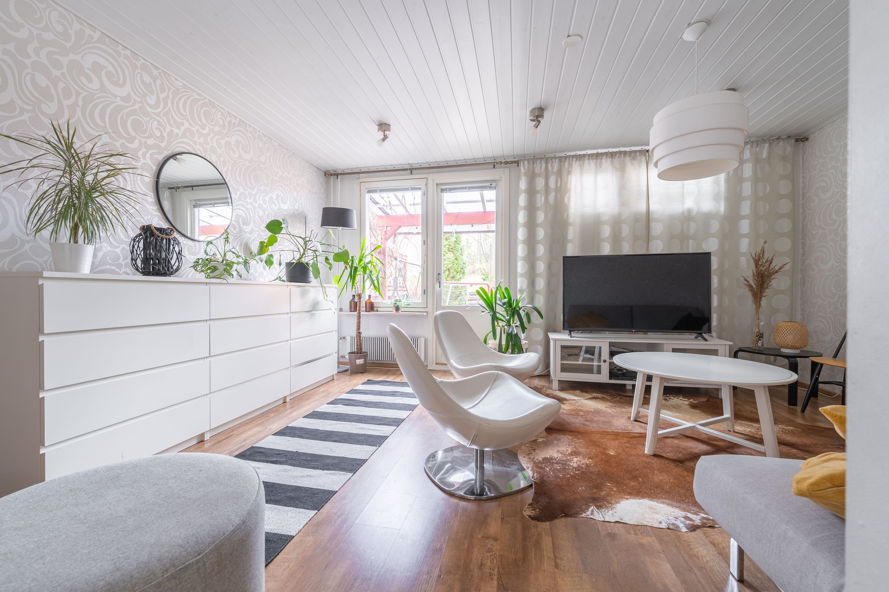 Tervetuloa tutustumaan tähän viihtyisään rivitaloasuntoon rauhallisella ja lapsiperheiden suosimalla alueella Jynkässä. Tämä kaksikerroksinen koti tarjoaa tilavat ja valoisat 95 neliötä, jotka ovat täydelliset niin pienelle perheelle kuin pariskunnallekin.