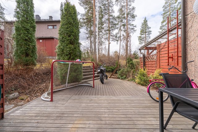 Läheltä löytyvät hyvät palvelut, kuten kauppa ja kirjasto. Myös koulut ovat kävelymatkan päässä. Bussipysäkki on aivan vieressä, joten pääset liikkumaan vaivattomasti keskustaan.