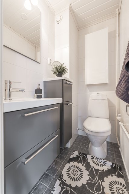 - WC-istuin, suihku, pesukoneliitäntä, ja lattialämmitys