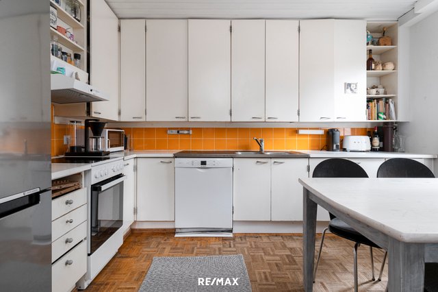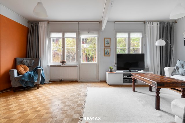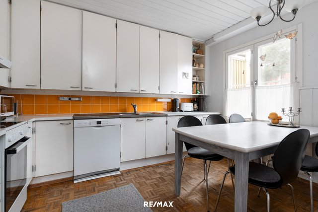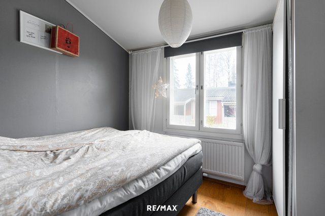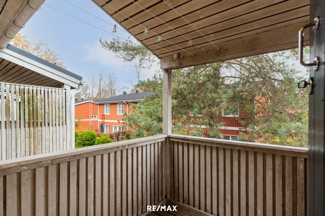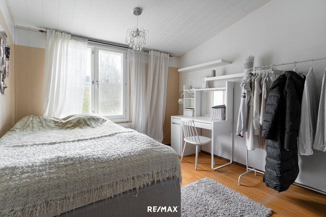 Yläkerrassa sijaitsee kolme makuuhuonetta, kylpyhuone ja oma sauna. Arjen pientä luksusta lisää katettu parveke, joka tarjoaa mukavan paikan vilvoitella saunan jälkeen. Keittiö ja pintamateriaalit kaipaavat päivitystä, mikä tarjoaa mainion tilaisuuden remontoida ja sisustaa koti omien toiveiden ja tyylin mukaiseksi. Täällä on erinomainen pohja, josta voi luoda juuri oman näköisen kodin.