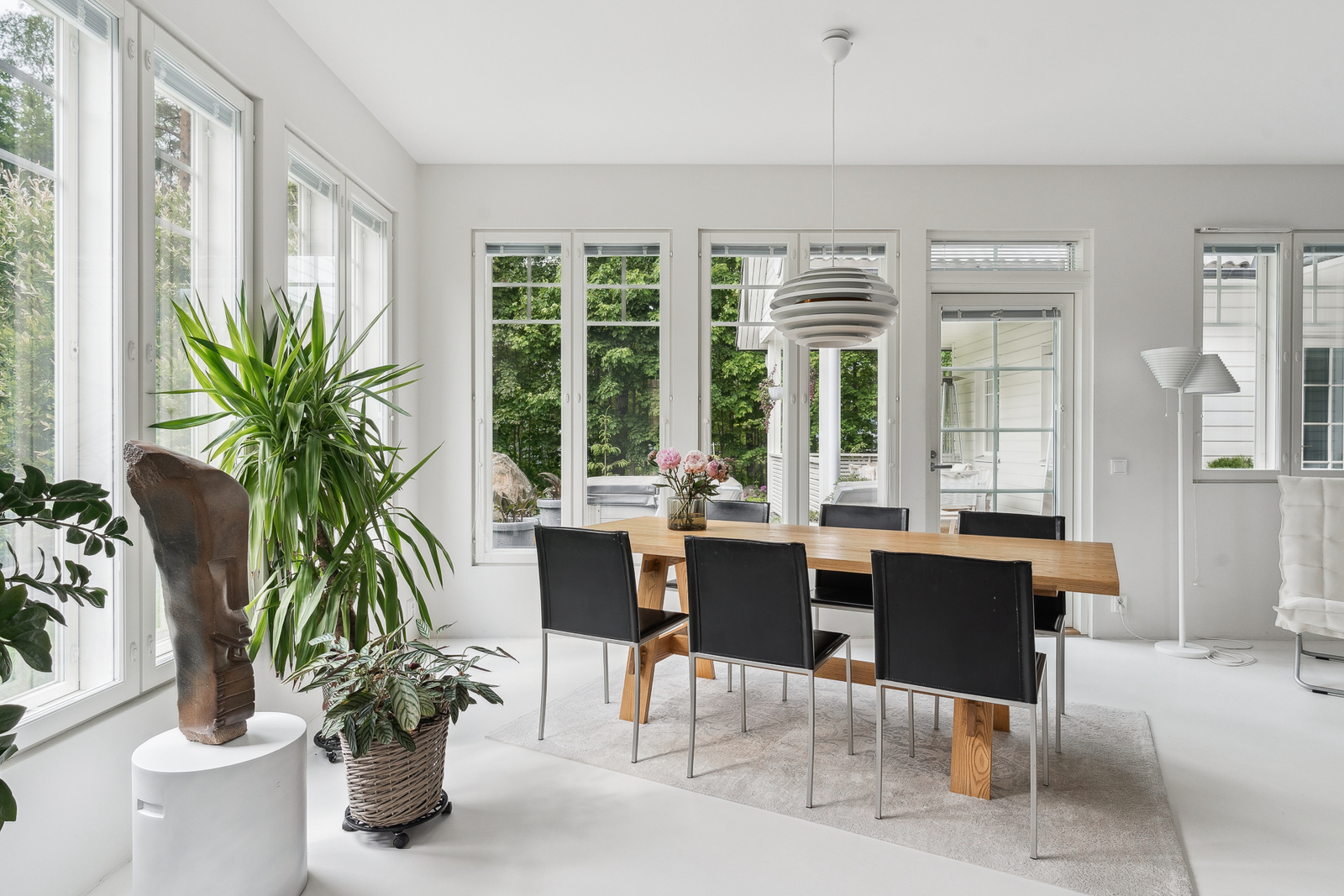 Pihapiiristä löytyy myös erillinen saunarakennus sekä autokatos/varastorakennus. Ulkona on tilava terassi, joka kutsuu viettämään aikaa perheen ja ystävien kanssa. Sijainti on erinomainen, sillä läheltä löytyvät niin koulut, puistot kuin hyvät julkiset liikenneyhteydetkin – bussipysäkki, juna-asema ja lentokenttä ovat kaikki helposti saavutettavissa.