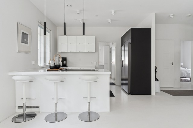 Talon avara pohjaratkaisu ja suuret ikkunat tuovat runsaasti luonnonvaloa sisään. Olohuoneessa on tunnelmallinen takka, ja keittiössä laadukkaat kvartsikomposiittitasot sekä modernit kodinkoneet tekevät ruoanlaitosta nautinnon. Kaksi makuuhuonetta ja erillinen vaatehuone tarjoavat runsaasti säilytystilaa, kun taas sauna ja kylpyhuone lattialämmityksellä tarjoavat rentouttavan paikan arjen kiireiden keskellä.