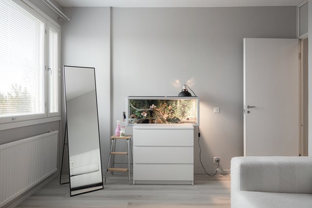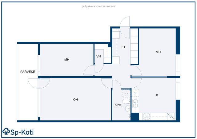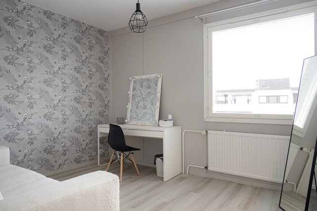 Asunnon pohjaratkaisu on toimiva ja tilava. Kaksi makuuhuonetta tarjoavat mukavasti tilaa perheelle tai työhuoneelle.