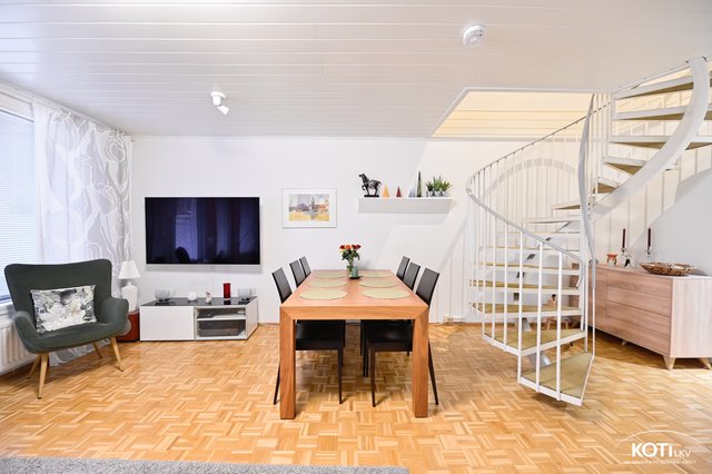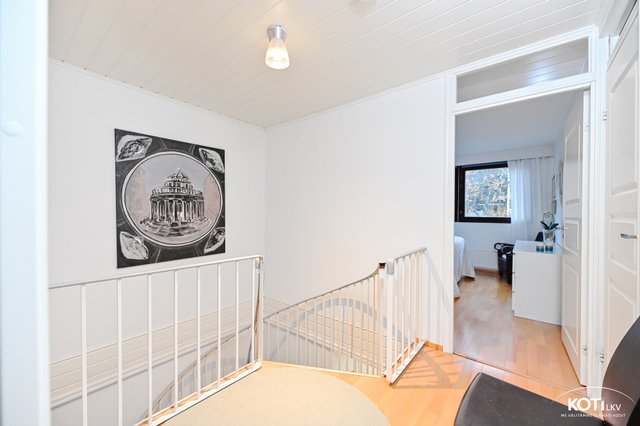 Asunto on hyvässä kunnossa. Keittiö, wc, sauna ja pesuhuone on kauniisti remontoitu. Tilavat makuuhuoneet tarjoavat mukavuutta kaikille perheenjäsenille. Yhdestä makuuhuoneesta on pääsy parvekkeelle, josta avautuvat kauniit maisemat. Molemmissa kerroksissa on remontoidut wc-tilat.