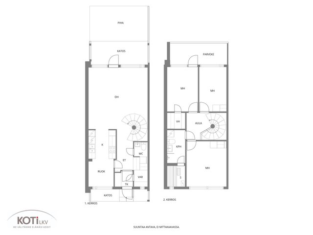 - Etupiha osin nurmikkoa pihalla terassi, pieni aidattu osin katettu takapiha/terassi etelään.