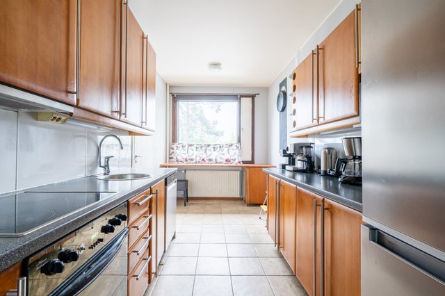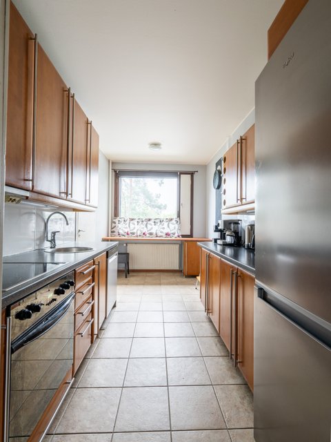 - Siisti keittiö, jossa varusteena on jääkaappi/pakastin, astianpesukone, uuni, keraaminen liesi ja liesituuletin. Työtasot ovat laminaattia. LATTIA: laatta SEINÄT: maali