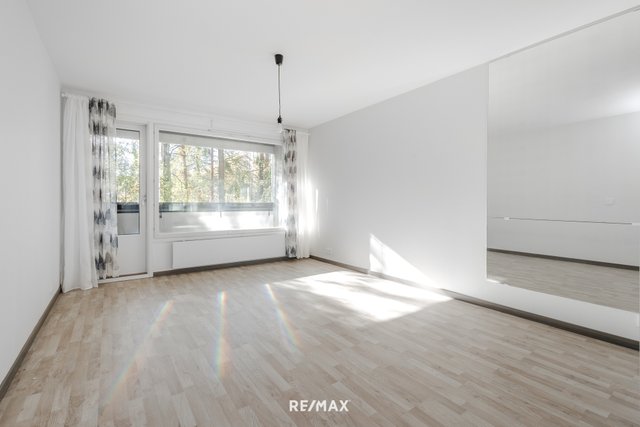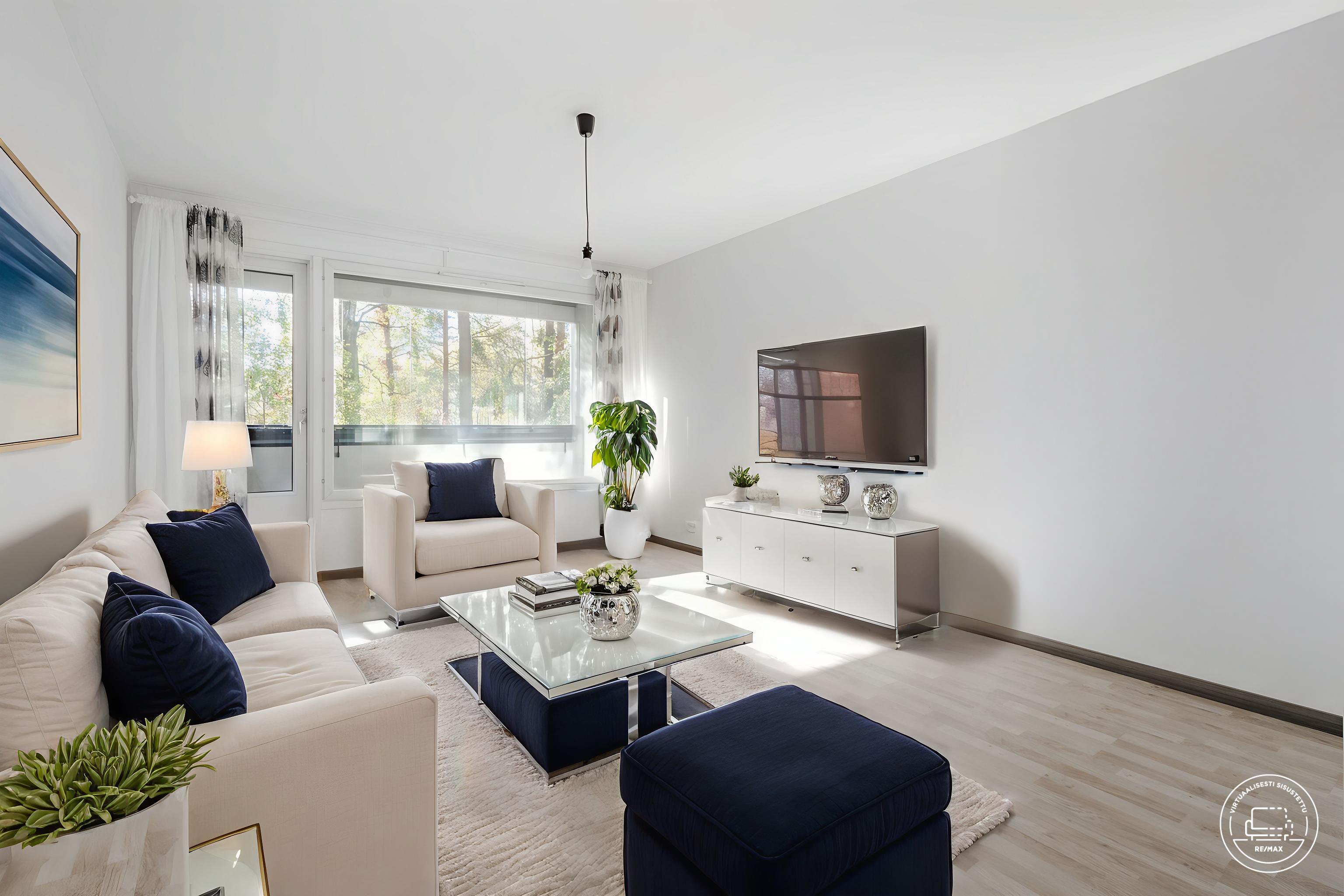 Tämän kodin sydän on valoisa ja tilava olohuone, josta on kulku lasitetulle parvekkeelle. Parvekkeella on mukava rentoutua työpäivän jälkeen ja nauttia rauhaisasta, puistomaisesta näkymästä taloyhtiön takapihalle.